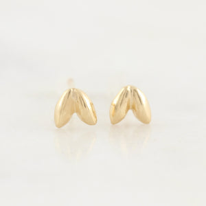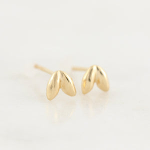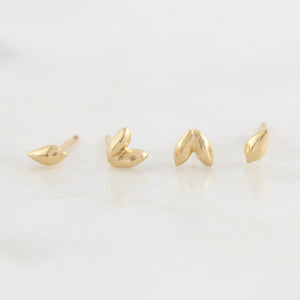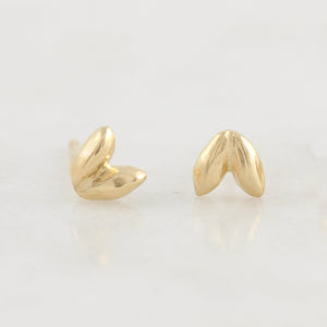 עגילים צמודים ועדינים בצורת עלים זהובים, שגולפו בעבודת יד בהשראת הטבע.
