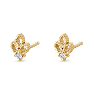עגילי זהב אולימפיה הם קטנים ונוחים, מושלמים לענידה בחור שני או שלישי. העגילים נוצרו בהשראת אומנות הסריגה העדינה והיופי הטבעי של עלים, משובצים ביהלום קטן שמוסיף נצנוץ עדין.