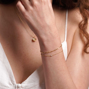 עשוי זהב 14 קראט בעבודת יד, עם חוליות קטנות שמחברות בין אלגנטיות רכה לבין יופי על זמני.