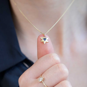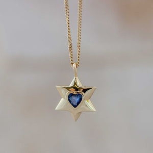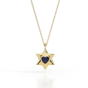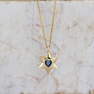 במרכז התליון לב קטן משובץ בספיר כחול טבעי, שמאיר את התליון בנגיעה אישית ומלאת משמעות.