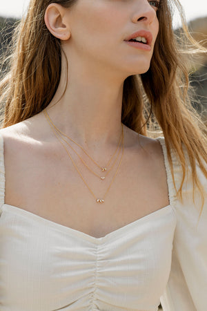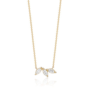 שרשרת זהב 14 קראט משובצת בשלושה יהלומים טבעיים בחיתוך מרקיזה, חיתוך אלגנטי שמזכיר עלים מוארכים.