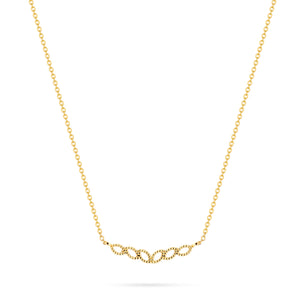 שרשרת זהב 14 קראט בעיצוב עלים סרוגים, בהשראת מלאכת הקרושה העדינה וההרמוניה של הטבע.