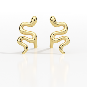 עגילי זהב עדינים בצורת נחש קטן, סמל להתחדשות, חוכמה וכוח שקט.