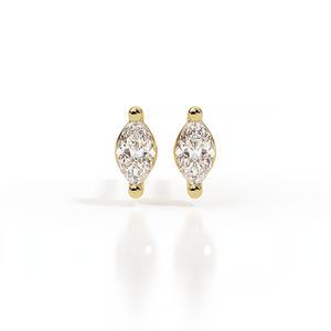 עגילי זהב צמודים בעיצוב נקי ונשי, משובצים יהלומי מרקיזה בצורת עלה – מחווה עדינה לטבע.