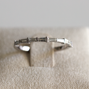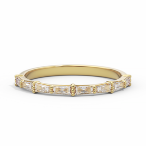 משובצת בשמונה יהלומים בצורת טייפר, המסודרים בקו סימטרי שמעניק פרשנות עכשווית לטבעת אטרניטי קלאסית.