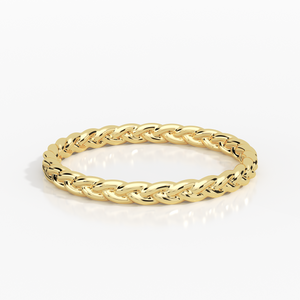 טבעת צמה עדינה, קלועה בזהב 14 קראט - רכה, עגולה ונשית.