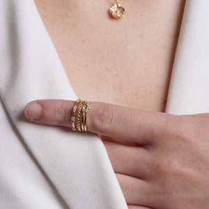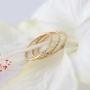 הקווים השזורים יוצרים תחושת תנועה טבעית ועדינות שקטה, מושלמת לענידה לבד, בשכבות עם טבעות נוספות, או כטבעת נישואין עם מראה טבעי ונוסטלגי.