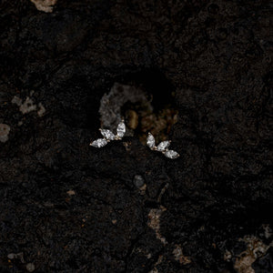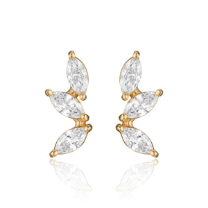 עגיל זהב עדין שמעוצב כשלושה עלים קטנים, כל אחד משובץ ביהלום מרקיזה נוצץ. ההשראה לעיצוב הגיעה מהטבע ומהפרטים הקטנים שמגדירים את הקולקציה שלנו.
