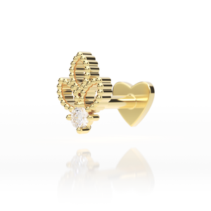פירסינג עדין שמחבר בין טבע לאומנות הסריגה, עלים קטנים בזהב 14 קראט, עם יהלום קטן שמאיר ברכות.