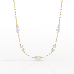 שרשרת זהב עדינה שמחברת יחד יהלומים בתנועה הרמונית ושקטה.