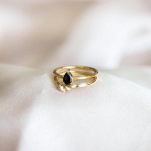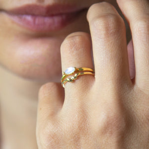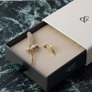 טבעת זהב עדינה בעיצוב אורגני של עלים, מתוך קולקציית Artemis שנוצרה בהשראת הטבע והחופש הנשי שארטמיס מייצגת.