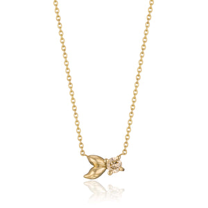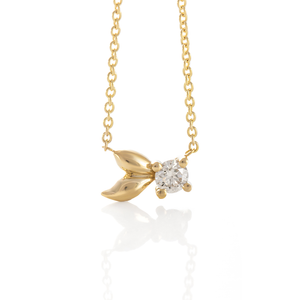 התליון המרכזי מעוצב כפרח זהב עם עלי כותרת קטנים, ובליבו יהלום שמפניה זוהר.