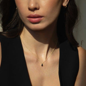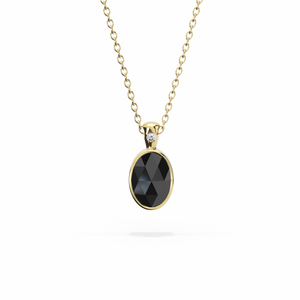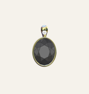 במרכז תליון הזהב משובץ יהלום סולט אנד פפר אובלי, אבן עמוקה ומסתורית. מעליו, יהלום לבן קטן מצייר הבזק של אור, ויוצר ניגודיות מושלמת.